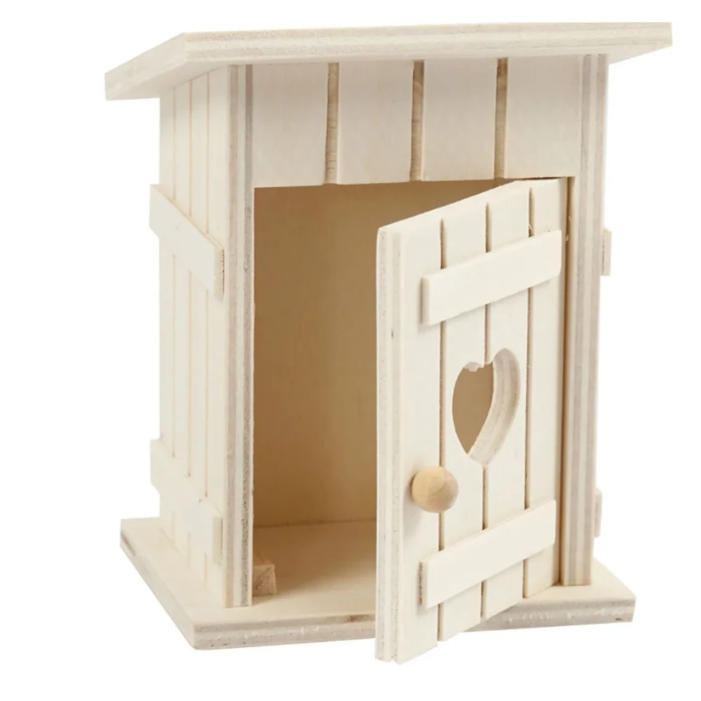 Kleine houten toilethuisje met een uitgesneden hartje en draaibaar deurtje van het merk Creative Company. Het toiletsetje is te gebruiken voor de seizoenstafel of als meubelstuk bij jouw eigen kabouterdeurtje.