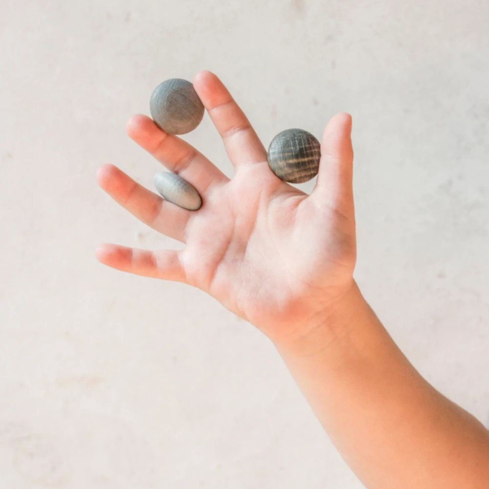 Combineer de houten stenen grijs, 36st. (Mandala Stones grey) met ander houten speelgoed van Grapat om nog mooiere en dynamischere vormen en patronen te maken.