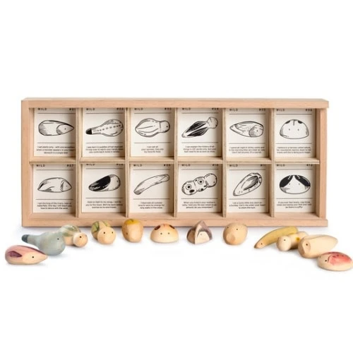 Wild is een verzameling van 12 wezens uit het faunarijk van het merk Grapat. Op de grens tussen fantasie en realiteit, heeft elk zijn eigen superkracht en verhaal op zijn kaart geschreven als een uitnodiging om te spelen. De sorteerbak is inbegrepen voor opslag en verzamelen, maar kan een perfecte aanvulling zijn op elke speelactiviteit met een open einde.