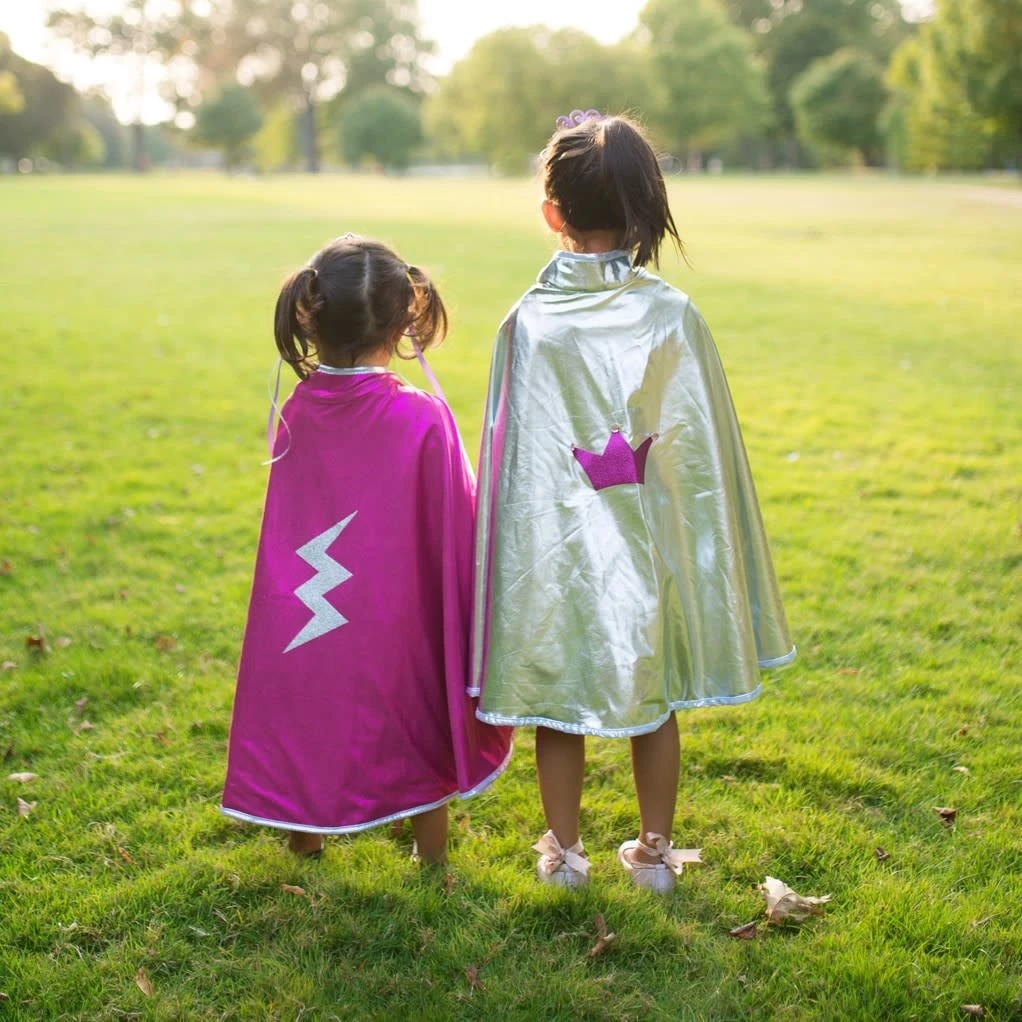 Ga jij vandaag voor roze? of toch voor zilver? Met deze prachtige cape van het merk Great Pretenders hoef je niet meer te kiezen. De cape kan je aan 2 zijdes dragen. US maat 5-6, Nederlandse maat +/- 116-122.