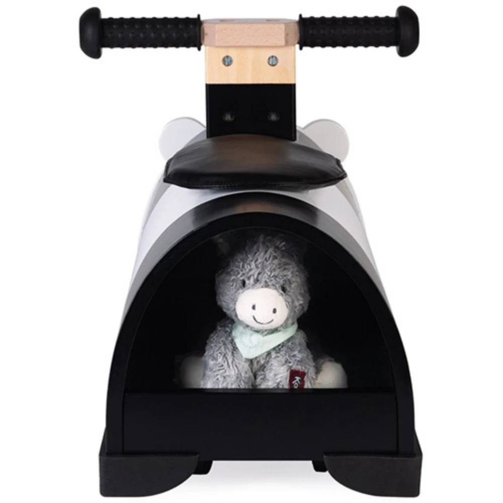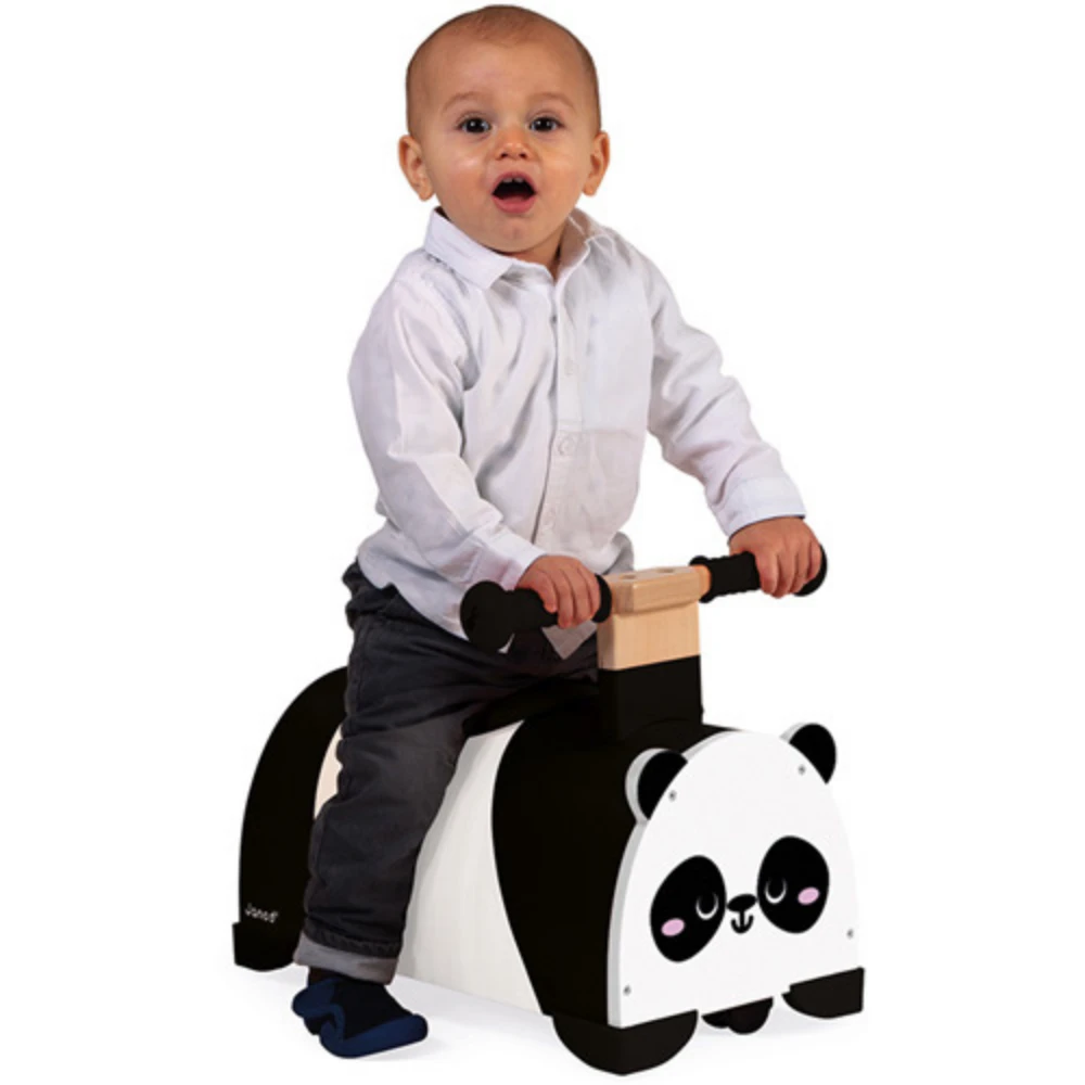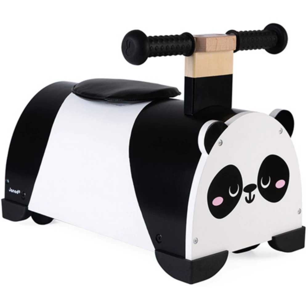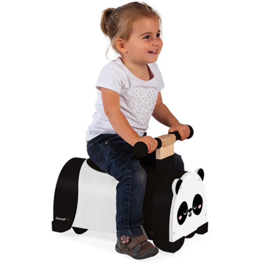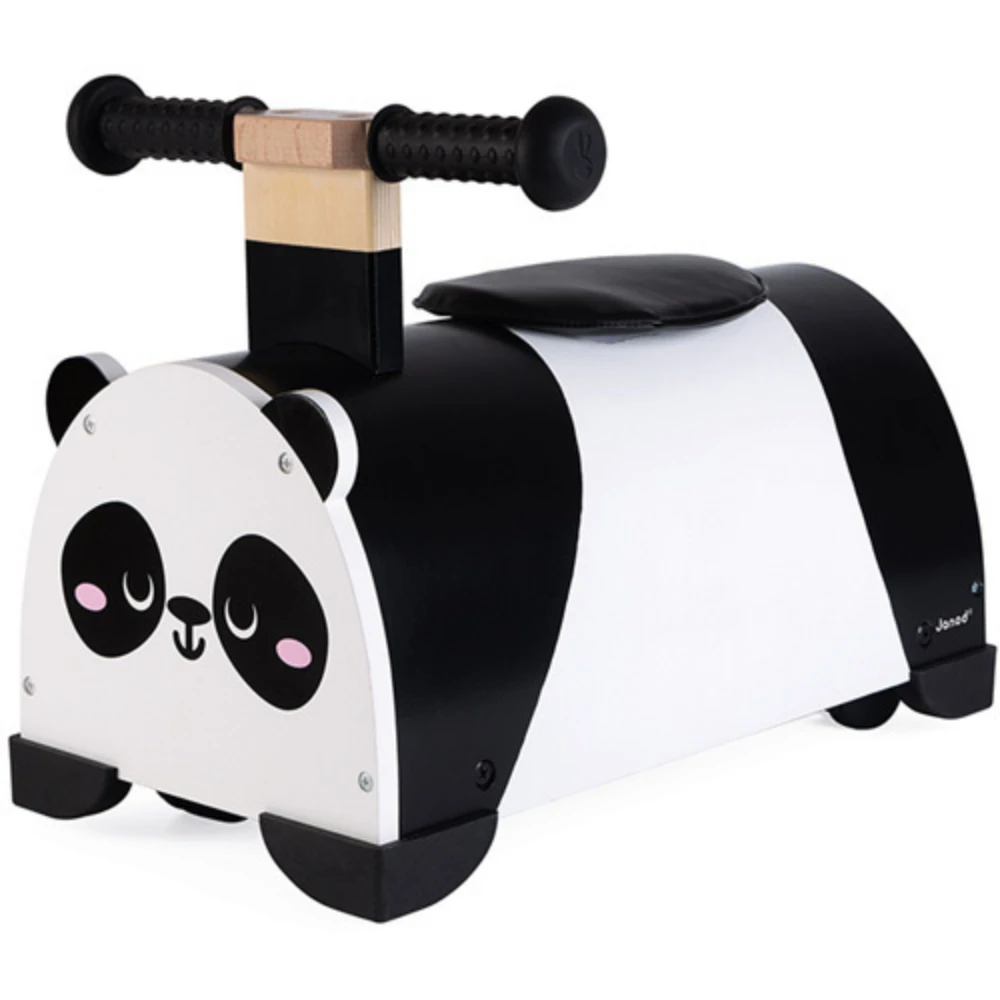 Loopauto – Panda is een houten loopauto met de kleuren en het hoofd van een panda van het merk Janod. Met deze loopauto kan het kind de hele kamer ontdekken en oefenen om te leren lopen.