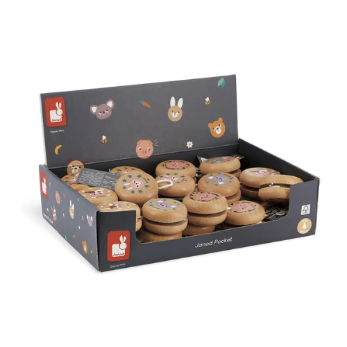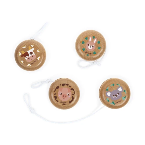 Jojo: Verschillende dieren. Koala, konijn, varken en koe. Het kind moet zijn behendigheid aanwenden om met deze leuke jojo te spelen. FSC-gecertificeerd.