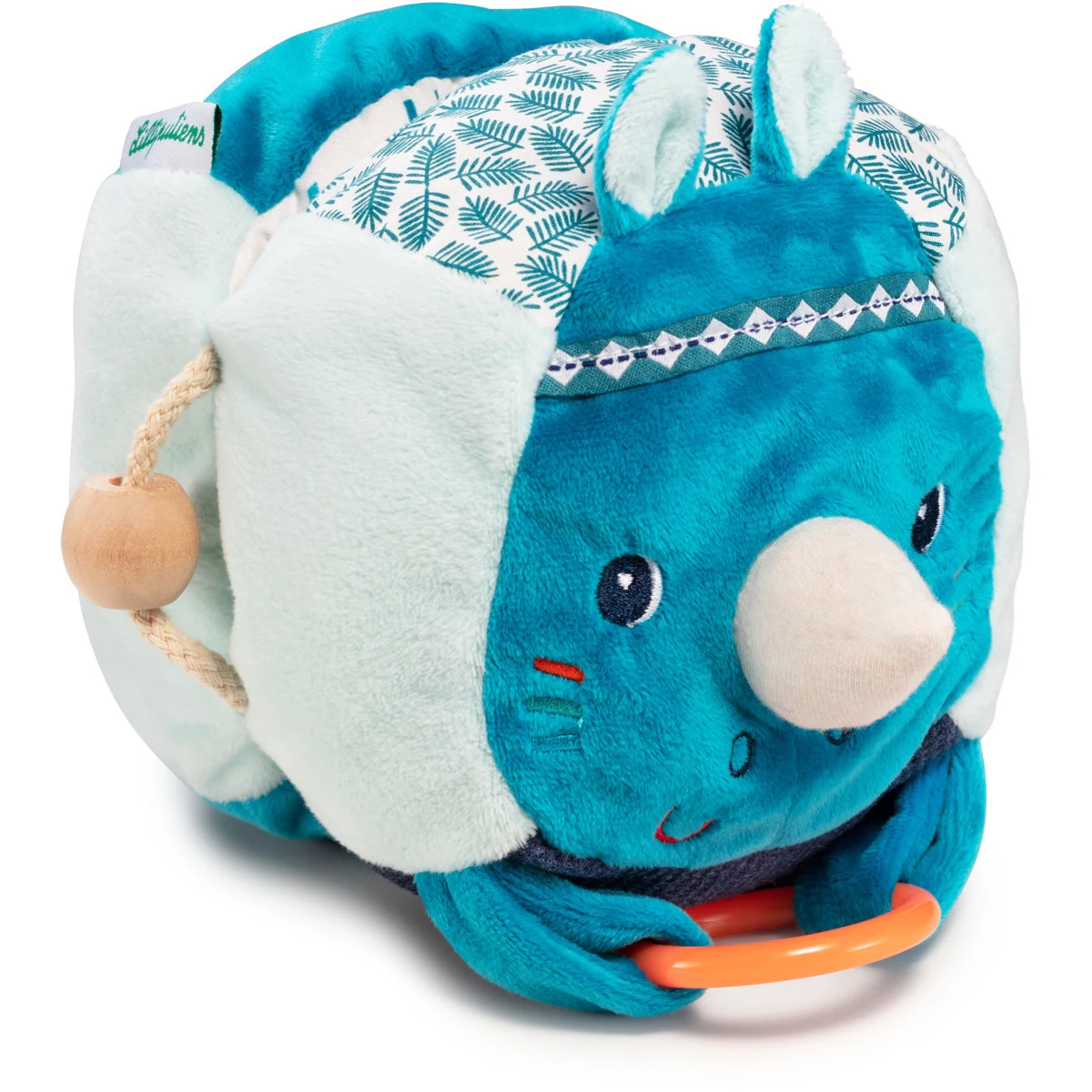 Marius de neushoorn is een ware uitdaging voor nieuwsgierige kindjes. Kleuren, geluiden, texturen en activiteiten stimuleren de zintuigen. Druk je op zijn snuit dan beert hij van plezier. Beetje bij beetje worden verbanden gelegd tussen acties en reacties. Een zeer volledig activiteitenspeelgoed dat mee-evolueert met je kindje.