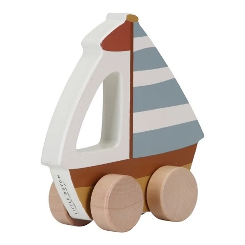 Hijs de zeilen voor een nieuw avontuur! Met een beetje fantasie zeil je door de hele kamer en zul je zien dat er in elke hoek van de kamer iets te ontdekken valt. Deze kleine zeilboot op wielen is gemaakt van massief hout zodat je kindje er eindeloos mee kan spelen. Bovendien is het een leuke accessoire voor de babykamer.