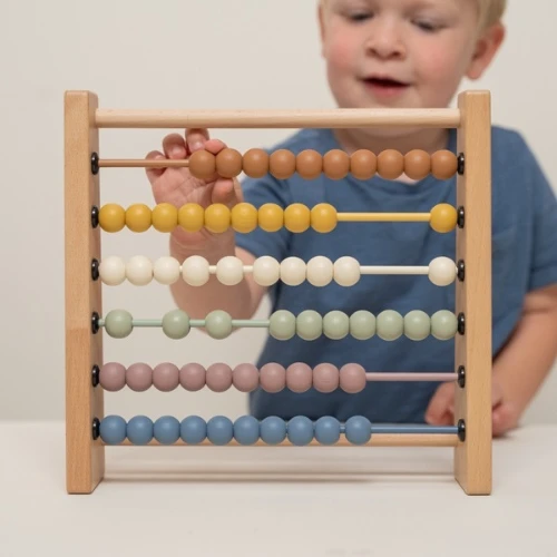 Tellen en sommen maken wordt nog leuker met dit houten telraam van het merk Little Dutch in de vintage kleuren.