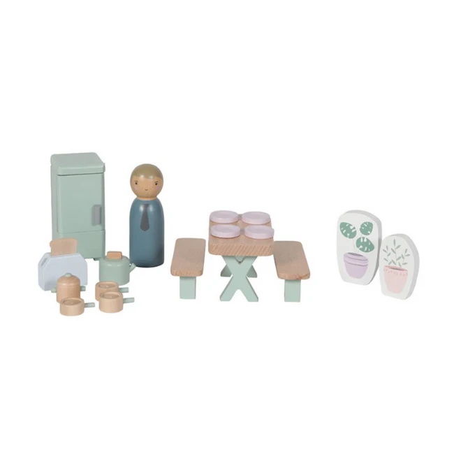 In deze uitbreidingsset zitten leuke meubels en schattige keukenaccessoires voor nog meer speelplezier met het Little Dutch poppenhuis.
