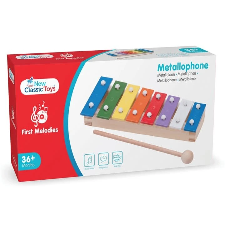 Maak kennis met dit prachtige muziekinstrument van top kwaliteit. Hier begint jouw muzikale ontdekkingsreis. Ontdek dat er harde, zachte, snelle, langzame, hoge en lage tonen zijn. Tover de klanken om tot een melodietje, voor uren speelplezier. Range C – C. Deze metallofoon is onderdeel van de First Melodies productlijn van New Classic Toys. Gitaren, piano’s, metallofonen en andere speelgoedinstrumenten voor heel veel plezier en muzikale ontwikkeling.