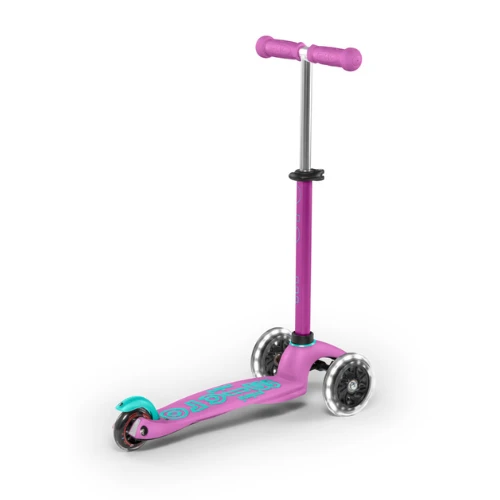 Deze lavendel kleurige Mini Micro Deluxe LED is extra veilig door zijn witte LED lampjes, zodat je kind ’s avonds beter zichtbaar is. Kinderen vinden de lampjes natuurlijk vooral heel erg cool. De Mini Micro DeLuxe lijn onderscheidt zich verder door het in hoogte verstelbare stuur en de geanodiseerde stuurstang in de kleur van het deck. Verkrijgbaar in veel spetterende kleurencombinaties!