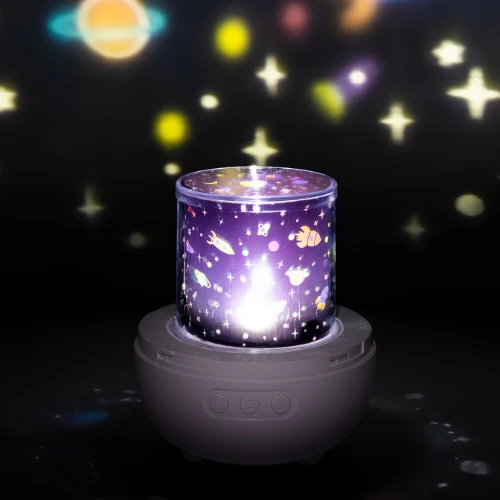 Little L Lumi nachtlampje is een oplaadbaar nachtlampje met muziekprojector met 3 verwisselbare projectiepatronen en 8 verschillende melodieën. De projectiebeelden kan je eenvoudig wisselen door de kap los te schroeven en op te tillen. De film binnenin kan je dan verwisselen. Ook is het mogelijk om beeldrotatie in of uit te schakelen.