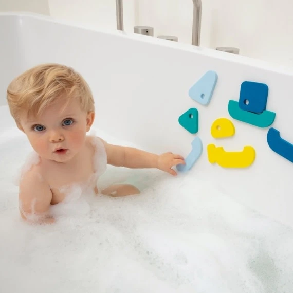 Badplezier gegarandeerd met deze leuke badpuzzel van het merk Quutopia! Zoek de juiste onderdelen bij elkaar en ontdek de schattige kleine bootjes: een onderzeeër, een zeilboot, een catamaran en een vrachtboot. Of nog grappiger, doe eens gek en bedenk volledig nieuwe soorten boten!